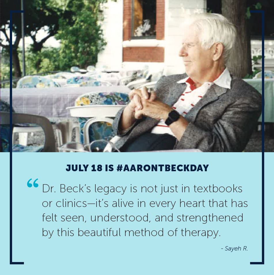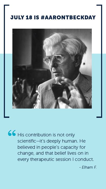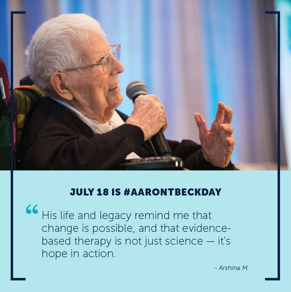 Aaron T. Beck Day is an opportunity for the global community to come together to spread the word about Dr. Beck’s work, and ensure that CBT continues to evolve to meet the needs of individuals everywhere who are struggling with health and mental health conditions and quality of life concerns.
