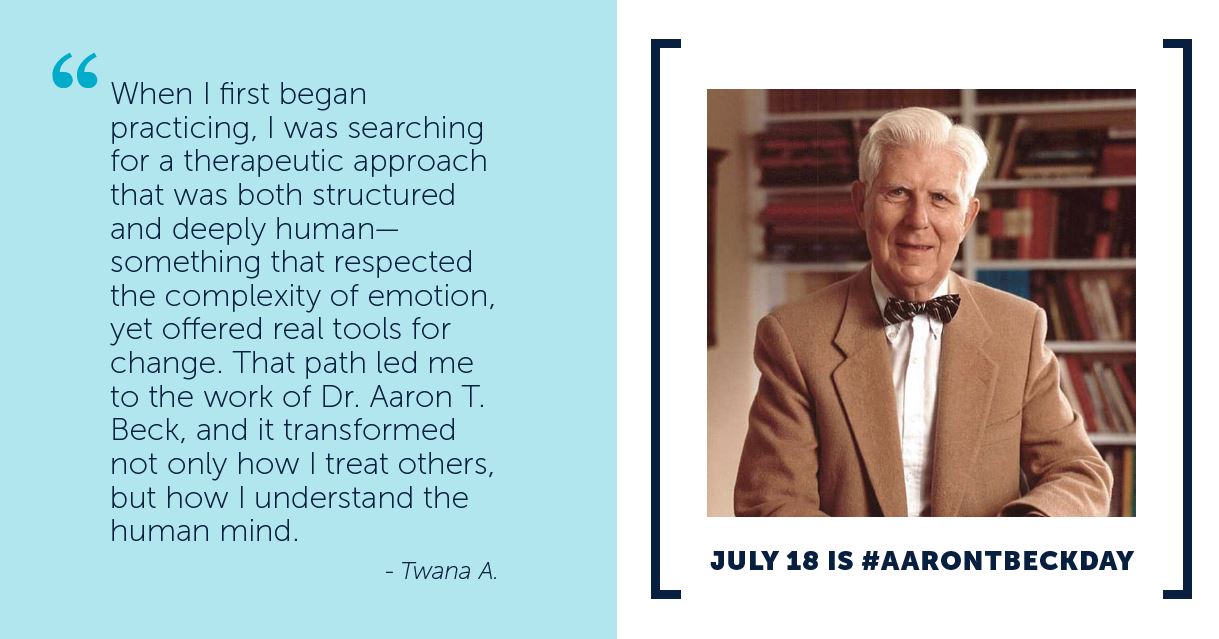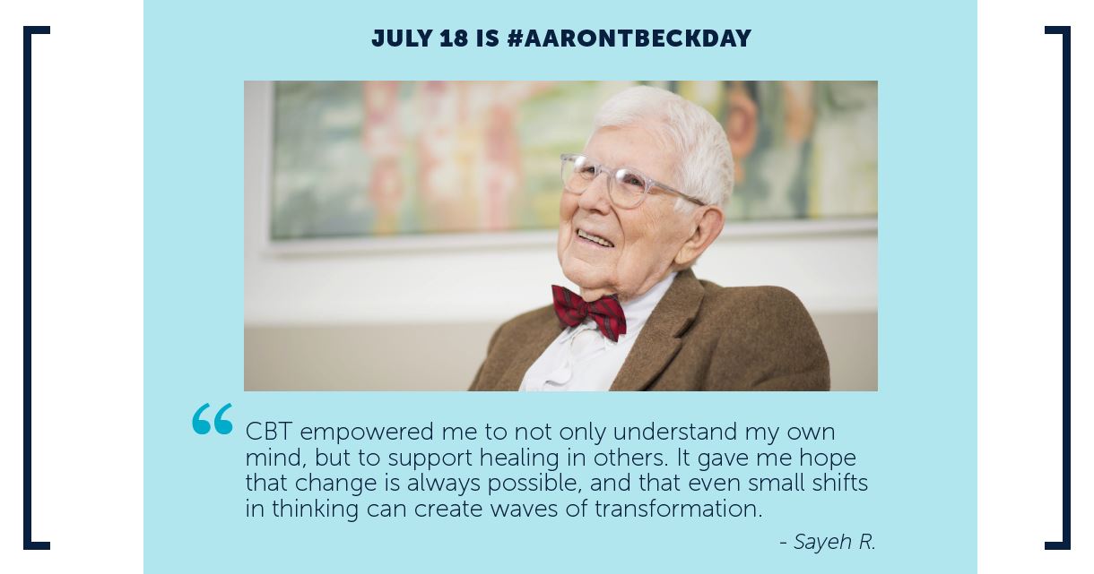 El Día de Aaron T. Beck es una jornada de acción anual que reúne a personas interesadas en mejorar la salud mental en todo el mundo. Cada año, el 18 de julio, personas de todo el mundo conmemoran el cumpleaños del difunto Dr. Beck reuniéndose para celebrar su legado, dar a conocer su vida y su obra y ejercer un impacto positivo en la salud mental de sus comunidades.